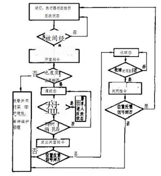 系統(tǒng)在程控或手控運(yùn)行方式且處于清洗過程時(shí),若出現(xiàn)收球網(wǎng)前后差壓越限,系統(tǒng)自動(dòng)轉(zhuǎn)入收球狀態(tài),進(jìn)行反洗,這樣可以清除附在收球網(wǎng)上的污物.保護(hù)收球網(wǎng)。