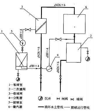 (1)膠球清洗裝置系統(tǒng)見圖1。