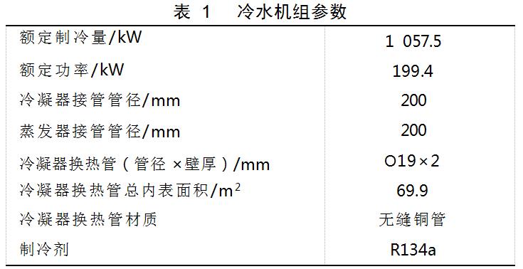 實驗選取的測試機組為1臺水冷螺桿式冷水機組,機組參數(shù)見表1。