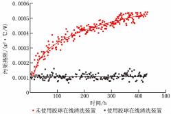 圖2使用冷凝器膠球自動在線清洗裝置前后冷凝器污垢熱阻的變化