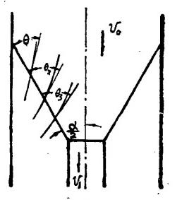 (1)進(jìn)入下方箱的中心部分流體(以下簡稱中心部分流體)既不加速也不減速,其余部分流體亦不發(fā)生變化。對于無粘性流體,此時V?=V。。在這種情況下流線不發(fā)生任何變化:仍為平行直流線。各處流線與收球網(wǎng)板的夾角均相等,等于網(wǎng)板與中心線的夾角(圖2),即式中α為收球網(wǎng)板的設(shè)計夾角。