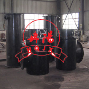 4、分匯器是一個三通閥,通過導向板的切換可使膠球進入需要清洗的一側凝汽器中工作。一般一臺機組需兩臺分匯器,其進口通徑為DN100,分配口為DN89,膠球投用時可通過窺視窗觀察運行情況。
