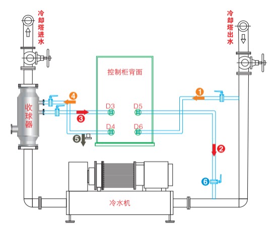 發(fā)電廠凝汽器膠球自動(dòng)清洗裝置系統(tǒng)組成: