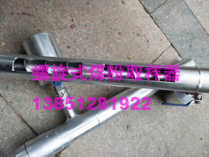 該螺旋式煤粉取樣器設(shè)計采用螺旋輸送原理,當(dāng)煤粉沉落在取樣嘴中,利用外部的手柄或電動執(zhí)行機(jī)構(gòu)旋轉(zhuǎn)螺旋輸送裝置,煤粉將通過取樣管送到落粉管進(jìn)入取樣瓶中。