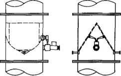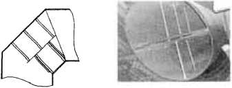 由于現(xiàn)場空間有限,不可能在收球網(wǎng)上方留出相當?shù)闹惫芏,因此,在凝汽器出水彎管段中水平焊接一不銹鋼折流板,見圖3。該折流板位于彎管段中心線處,將循環(huán)水流一分為二,用以規(guī)整彎管內(nèi)循環(huán)水流,使循環(huán)水能夠均勻地流經(jīng)收球網(wǎng),以利于膠球收集。