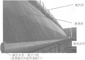 凝結水收集管的清理。凝結水收集管用于匯集各個換熱單元冷凝下來的凝結水,并引流至熱井,管徑一般較小。這段管道水平段較多,1臺600MW機組空冷系統凝結水收集管水平管(dl68mm,圖7)累計長達約960m,現在的冷態(tài)沖洗因沖洗水流量太小無法達到,所以特別建議對凝結水收集管進行單獨且大流量沖洗,仍然用沖洗凝結水管時安裝的臨時沖洗管道,將原先的凝結水管沖洗出口端封閉,打開凝結水收集管的進水閥門,將收集管上的排污法蘭打開,用高速水流將收集管內部的污物沖出系統,從凝結水收集總管處的排污法蘭處排放。沖洗至出水清澈、無大顆粒雜質為止。然后關閉排污法蘭,仍用臨時沖洗水對凝結水收集管及熱井進行沖洗,將雜質沖到熱井,后清理熱井。人工清理熱井時,可以先進行掃除,然后用海綿將泥水吸凈,后,用面團粘除細小的機械微粒。此外,建議凝結水收集管在安裝時整體呈一定的斜率,向下連接至熱井。