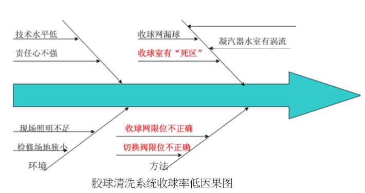 目標(biāo)值:使膠球清洗裝置收球率95%。#3機(jī)膠球清洗裝置系統(tǒng)收球率太低,不能在機(jī)組運(yùn)行時(shí)清潔凝汽器,而且大量膠球隨循環(huán)水進(jìn)入了冷卻塔,使冷卻塔濾網(wǎng)堵塞嚴(yán)重,影響了循環(huán)水流量,使機(jī)組的安全運(yùn)行受到了極大的威脅,因此,對(duì)膠球清洗裝置系統(tǒng)改進(jìn),提高收球率是必耍的。