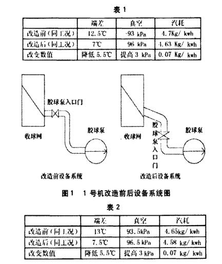 1、膠球清洗裝置改造前后主要指標(biāo)對(duì)比