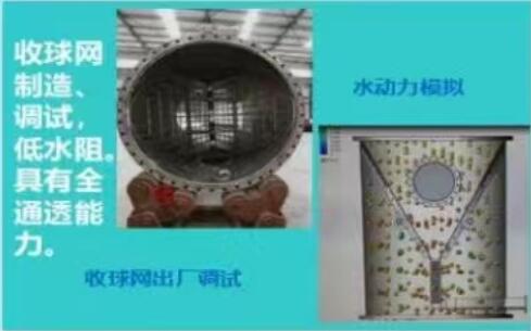 膠球清洗裝置膠球磨損到小尺寸,從收球網(wǎng)網(wǎng)板與筒體相貫線區(qū)域或網(wǎng)片間隙中逃逸。